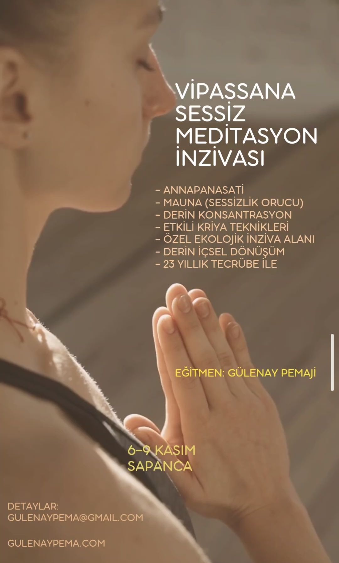 Gülenay Pemaji ile Vipassana Meditasyon İnzivası